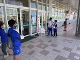 糸満市の潮崎シティのサンエー入り口で5名の生徒で道行く方々へ協力を依頼しました。