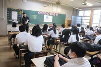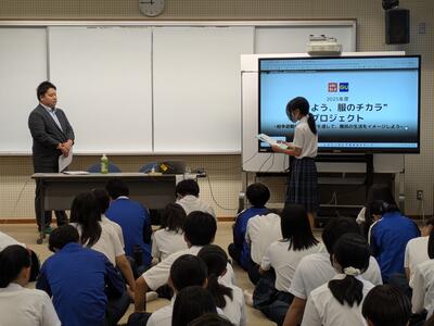初回の授業として、ユニクロから講師の方をお呼びして、これからの取組の概要について説明を受けました。「難民問題」について考える良い機会になったと思います。