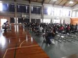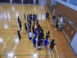 体育館には男女バドミントン部約40名ほどが参加しました。