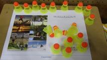 ラケットは、テニスより一回り小さく軽く、シャトルはバドミントンと似ていますが少し小さく重かったです。