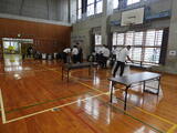 チャックが終われば、トラックが来るまで体育館でトランクだけ待機