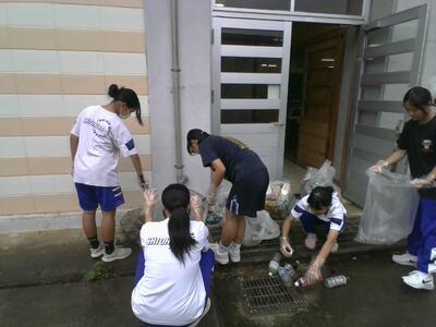 天候も心配されましたが無事に実施でき、清掃しながら、潮平権現壕や潮平ガーなど、地域の史跡も廻ることができました。自分たちが暮らす地域のことを考える良い機会になりました。