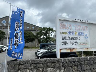 今日から2学期がスタート。正門掲示板も新しくなりました。
