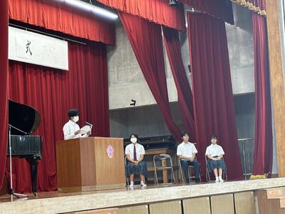 そのあとの始業式では各学年代表と生徒会が抱負を述べました。