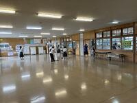 教室で朝の会のあと、1校時は体育館で始業式(周辺は部活動保護者の環境整備できれいでした)。